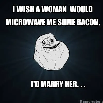 Create I WISH A WOMAN WOULD MICROWAVE ME SOME BACON, I'D MARRY HER. . . Meme