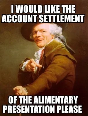 Create I would like the account settlement Of the alimentary presentation please Meme