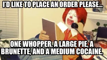 Funny I’d like to place an order please… One whopper, a large pie, a brunette, and Meme Template