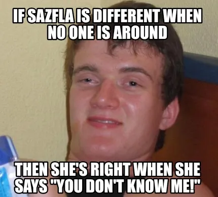 Create Funny If sazfla is different when no one is around Then she's right when she says "You Meme