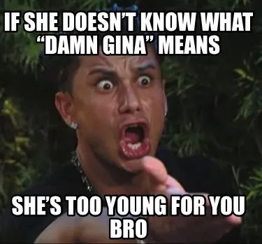 Create Funny If she doesn’t know what “DAMN GINA” means SHE’S TOO YOUNG FOR YOU BRO Meme