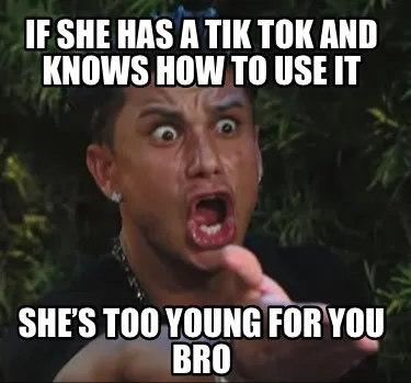 Create Funny If she has a tik tok and knows how to use it She’s too young for you bro Meme