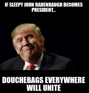 Create Funny If Sleepy John Radenbaugh becomes president... Douchebags Everywhere will Unite Meme