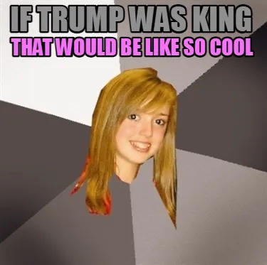 Make your own "Funny If Trump was King that would be like so cool" meme with MemeCreator's free online meme generator. Add text, stickers, and drawings — then download or share. No watermark, no sign-up required.