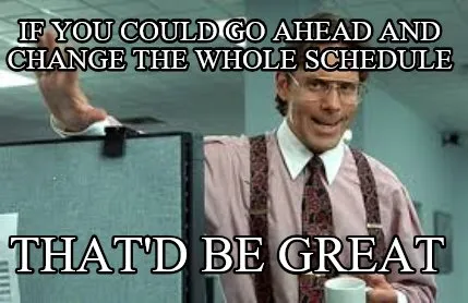 Funny If you could go ahead and change the whole schedule That'd be great Meme Template