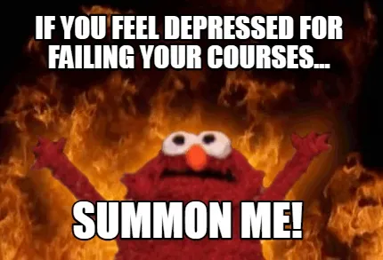 Make your own "Funny If you feel depressed for failing your courses... summon me!" meme with MemeCreator's free online meme generator. Add text, stickers, and drawings — then download or share. No watermark, no sign-up required.