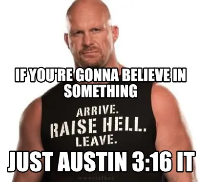 Create Funny If you're gonna believe in something Just Austin 3:16 it Meme