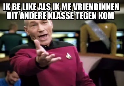 Make your own "Ik Be like als ik me vriendinnen uit andere klasse tegen kom" meme with MemeCreator's free online meme generator. Add text, stickers, and drawings — then download or share. No watermark, no sign-up required.