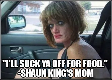 Make your own "Funny "I'll suck ya off for food." -Shaun king's mom" meme with MemeCreator's free online meme generator. Add text, stickers, and drawings — then download or share. No watermark, no sign-up required.