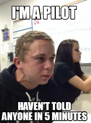 Funny I'm a pilot Haven't told anyone in 5 minutes Meme Template
