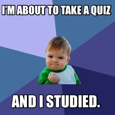 Make your own "Funny I’m about to take a quiz And I studied." meme with MemeCreator's free online meme generator. Add text, stickers, and drawings — then download or share. No watermark, no sign-up required.