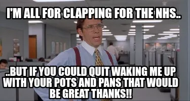 Create Funny I'm all for clapping for the NHS.. ..but if you could quit waking me up with you Meme