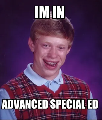 Make your own "Funny Im in Advanced Special ed" meme with MemeCreator's free online meme generator. Add text, stickers, and drawings — then download or share. No watermark, no sign-up required.