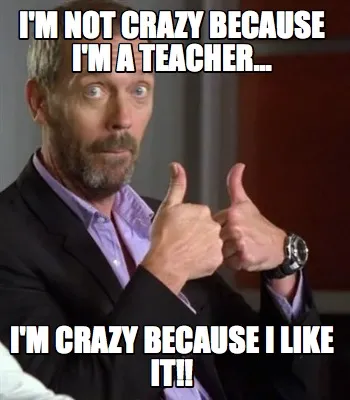 Funny I'm not crazy because i'm a teacher... i'm crazy because I like it!! Meme Template
