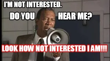 Funny I'm not interested. Do you hear me? LOOK HOW NOT INTERESTED i AM!! Meme Template