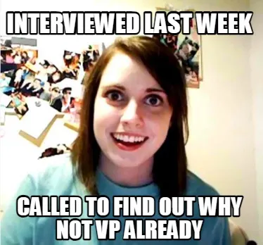 Make your own "Interviewed last week called to find out why not VP already" meme with MemeCreator's free online meme generator. Add text, stickers, and drawings — then download or share. No watermark, no sign-up required.