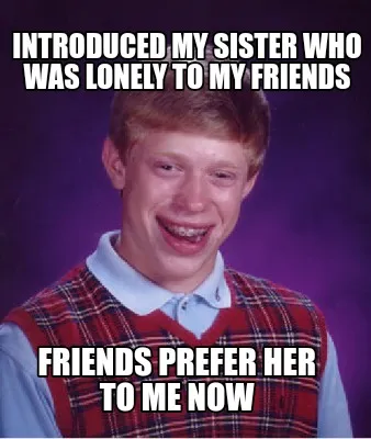 Create Funny INTRODUCED MY SISTER WHO WAS LONELY TO MY FRIENDS FRIENDS PREFER HER TO ME NOW Meme