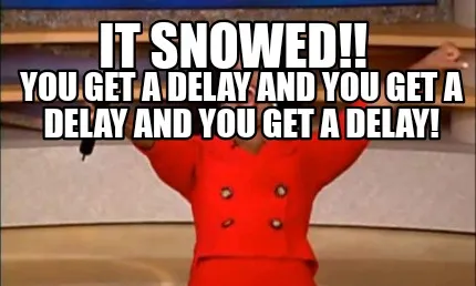 Create Funny It snowed!! You get a delay and you get a delay and you get a delay! Meme
