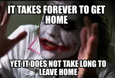 Create Funny It takes forever to get home Yet it does not take long to leave home Meme