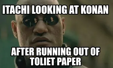 Create Funny Itachi looking at konan After running out of toliet paper Meme