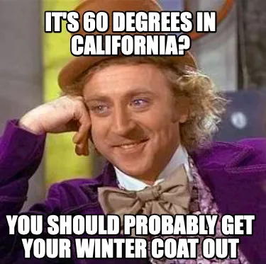 It's 60 degrees in California? You should probably get your winter coat out Meme Template