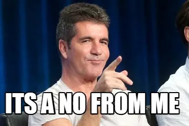 Make your own "Funny Its a no from me" meme with MemeCreator's free online meme generator. Add text, stickers, and drawings — then download or share. No watermark, no sign-up required.