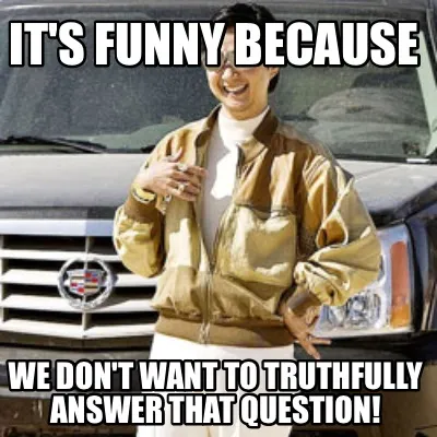 Create It's funny because We don't want to truthfully answer that question! Meme