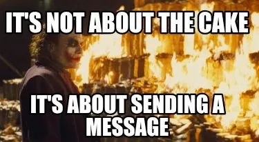 Make your own "It's not about the cake It's about sending a message" meme with MemeCreator's free online meme generator. Add text, stickers, and drawings — then download or share. No watermark, no sign-up required.