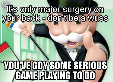 Funny It's only major surgery on your back - don't be a wuss You've goy some serious g Meme Template