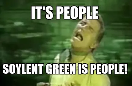 Make your own "It's people Soylent green is people!" meme with MemeCreator's free online meme generator. Add text, stickers, and drawings — then download or share. No watermark, no sign-up required.