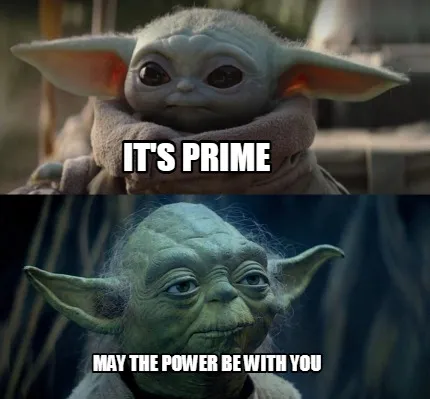 Make your own "It's prime may the power be with you" meme with MemeCreator's free online meme generator. Add text, stickers, and drawings — then download or share. No watermark, no sign-up required.