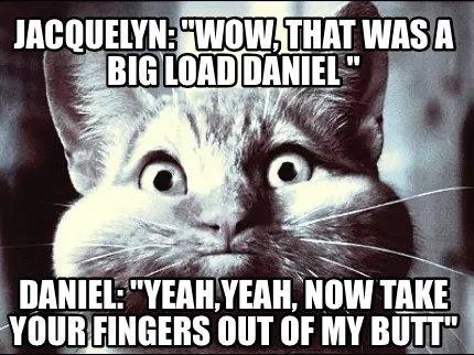 Make your own "Jacquelyn: "wow, that was a big load Daniel " Daniel: "yeah,yeah, now take your" meme with MemeCreator's free online meme generator. Add text, stickers, and drawings — then download or share. No watermark, no sign-up required.