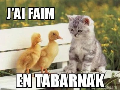 Make your own "J'AI FAIM EN TABARNAK" meme with MemeCreator's free online meme generator. Add text, stickers, and drawings — then download or share. No watermark, no sign-up required.