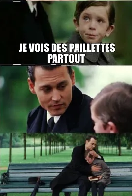Make your own "Je vois des paillettes partout" meme with MemeCreator's free online meme generator. Add text, stickers, and drawings — then download or share. No watermark, no sign-up required.