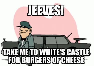 Create Funny Jeeves! Take me to White's castle for burgers of cheese Meme