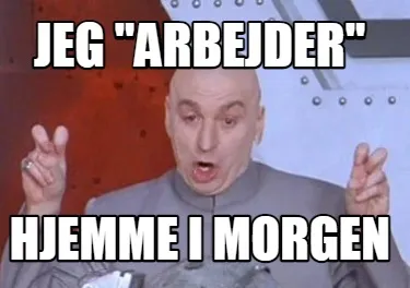 Funny Jeg "arbejder" hjemme i morgen Meme Template