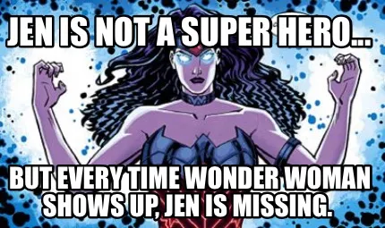 Create Funny Jen is not a super hero... But every time Wonder Woman shows up, Jen is missing. Meme