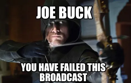 Make your own "Joe Buck You have failed this broadcast" meme with MemeCreator's free online meme generator. Add text, stickers, and drawings — then download or share. No watermark, no sign-up required.
