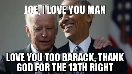 Create Funny JOe, i love you man love you too barack, thank god for the 13th right Meme