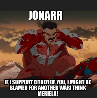 Create Funny Jonarr If I support either of you, I might be blamed for another war! Think Meri Meme