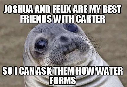 Create Funny Joshua and Felix are my best friends with Carter so I can ask them how water for Meme