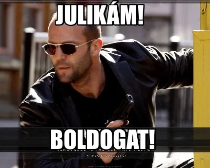 Make your own "Julikám! Boldogat!" meme with MemeCreator's free online meme generator. Add text, stickers, and drawings — then download or share. No watermark, no sign-up required.