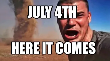 Make your own "Funny July 4th Here it comes" meme with MemeCreator's free online meme generator. Add text, stickers, and drawings — then download or share. No watermark, no sign-up required.