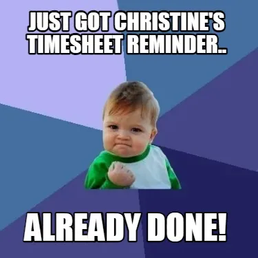 Create Funny Just got Christine's timesheet reminder.. Already done! Meme
