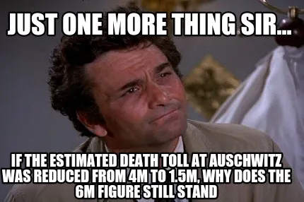 Funny Just one more thing sir... If the estimated death toll at auschwitz was reduced Meme Template