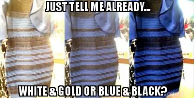 Funny JUST TELL ME ALREADY... WHITE & GOLD OR BLUE & BLACK? Meme Template