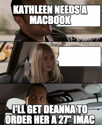 Funny Kathleen needs a MacBook I'll get Deanna to order her a 27" iMac Meme Template