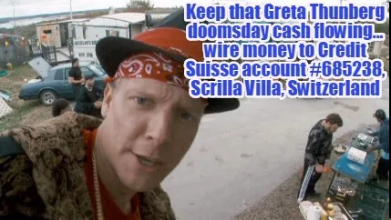Create Funny Keep that Greta Thunberg doomsday cash flowing... wire money to Credit Suisse ac Meme