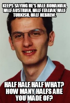 Funny keeps saying he's half romanian, half austrian, half italian, half turkish, half Meme Template