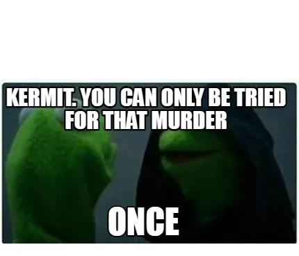 Make your own "Funny kermit. You can only be tried for that murder once" meme with MemeCreator's free online meme generator. Add text, stickers, and drawings — then download or share. No watermark, no sign-up required.